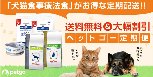 ペットゴーは、プレミアムフード・おやつ・おもちゃ・医薬品・療法食・サプリメントなど、愛猫と愛犬と飼い主様の生活を快適に支える事をモットーとしているペット用品通販サイトです。